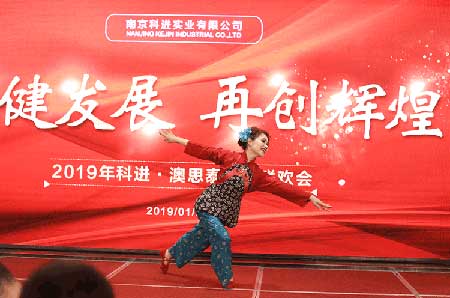 作者:科進-澳思泰 瀏覽:459 發(fā)布時間:2019/1/29 16:15:54“瑞犬凱歌辭舊歲,金豬送福迎新年”,1月27日晚上6點,2019年科進-澳思泰新春聯歡會在南京常發(fā)廣場舉行,公司全體員工,部分家屬代表,和特邀嘉賓共計170多人齊聚一堂,共同欣賞了精彩的晚會,留下了美好而又難忘的回憶。