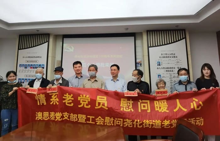 “情系老黨員,慰問暖人心”。2021年5月28日,中共澳思泰黨支部書記俞政君帶領公司黨員和干部慰問了堯化街道部分老黨員,這是在慶祝建黨100周年之際,公司黨支部開展黨史學習教育系列活動之一,旨在關心老同志,學習老黨員,交流學習心得,傳承紅色傳統(tǒng),弘揚革命精神。
