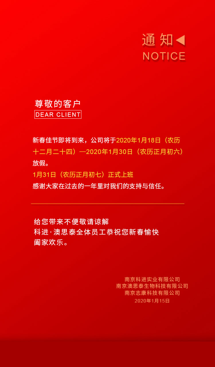 南京科進(jìn)實(shí)業(yè)有限公司2020年春節(jié)放假通知